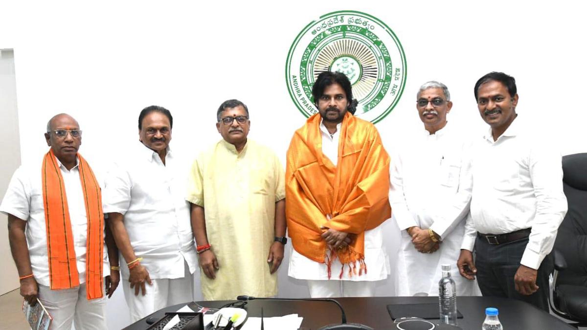 VHP leaders meet Deputy CM K. Pawan Kalyan to discuss temple development and Hindu Dharma propagation in AP.