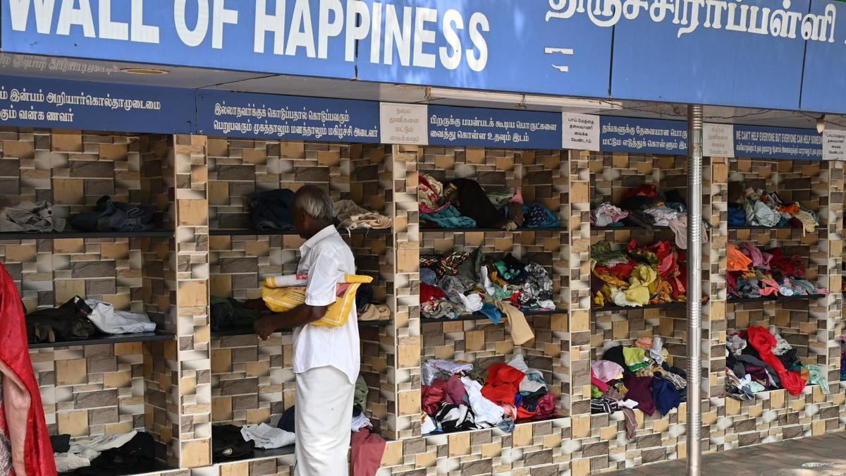 "Wall of Happiness" offers a community-driven initiative for donating laundered clothes to those in need in Tiruchi.