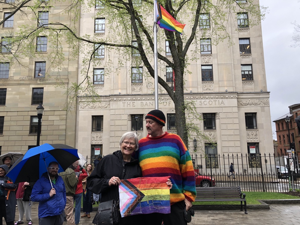 Activists and members of Nova Scotia’s NDP gathered on Wednesday morning for a flag-raising at Province House to commemorate the International Day to End Homophobia, Transphobia and Biphobia.