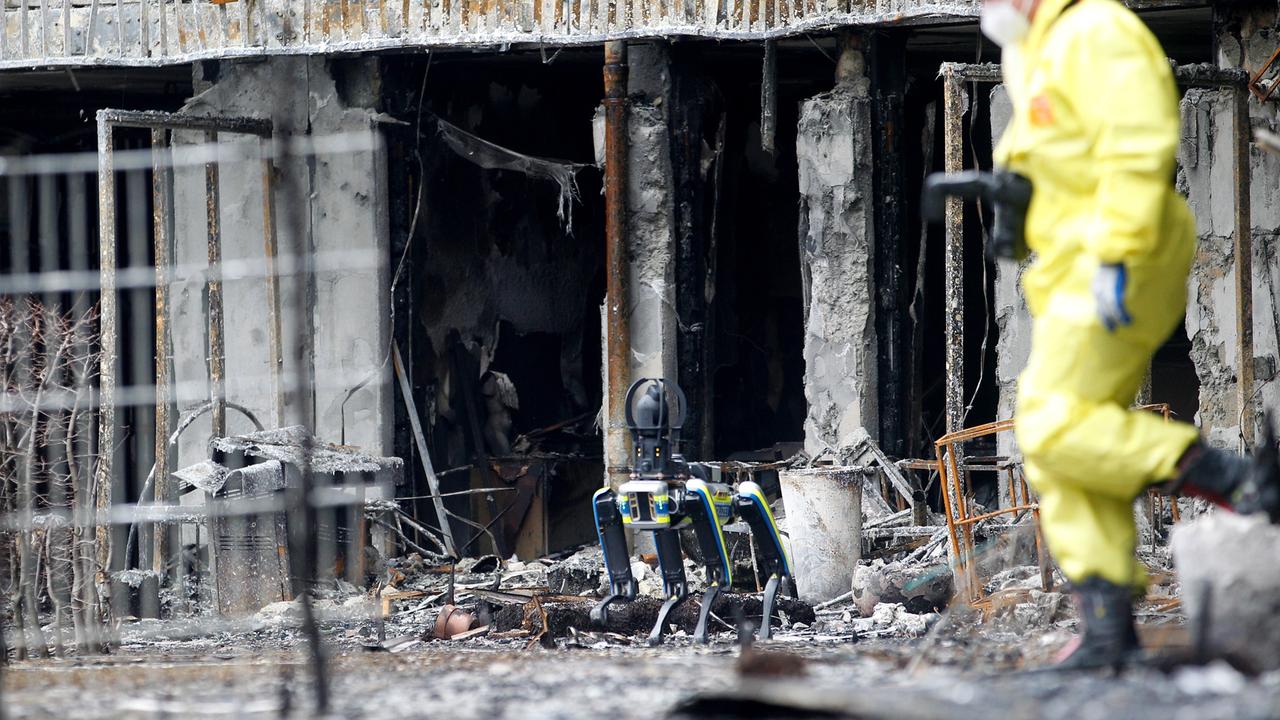 Bei der Erkundung der Brandstelle kam am Dienstagmittag auch ein vierbeiniger Polizei-Roboter zum Einsatz. Der 35 Kilo schwere Laufroboter untersuchte mit Kameras und Sensoren das einsturzgefährdete Haus, das weiterhin nicht betreten werden darf.