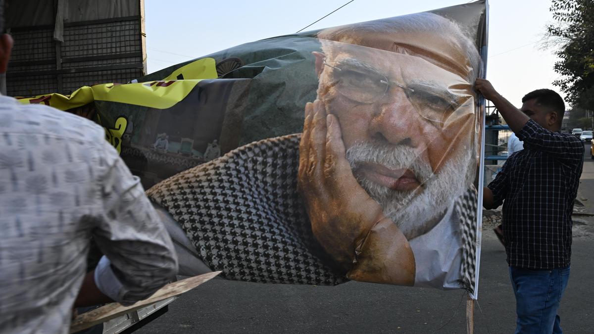 Youth Congress workers put up banners against Modi in Bengaluru